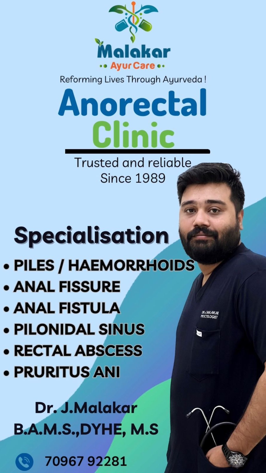 Malakar Ayur Care (MAC) is one of the renowned Anorectal clinic in and around Trichy, TamilNadu with multidisciplinary Ayurvedic approach for all Anorectal disorders such as Piles / Haemorrhoids, Fistula in ano, Fissure in ano, Pilonidal sinus, Perianal abscess, Rectal polyp, Pruritus ani and other Anorectal disorders since almost 35 years. MAC is a home to a dedicated team of well experienced Male & Female Proctologists and nurses that are committed to the diagnosis, treatment, and prevention of all Anorectal related health. All Para-surgical Procedures are performed at Operation Theatre with proper sanitization and sterilization.MAC mainly follows innovative combination of Classical ...
